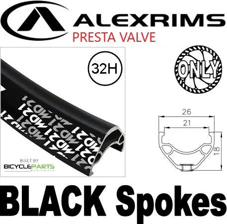 WHEEL - 29er Alex MD21 32H P/j Black Rim, FRONT 12mm T/A (110mm OLD) Centerlock Disc Sealed Novatec Black Hub, BLACK Spokes